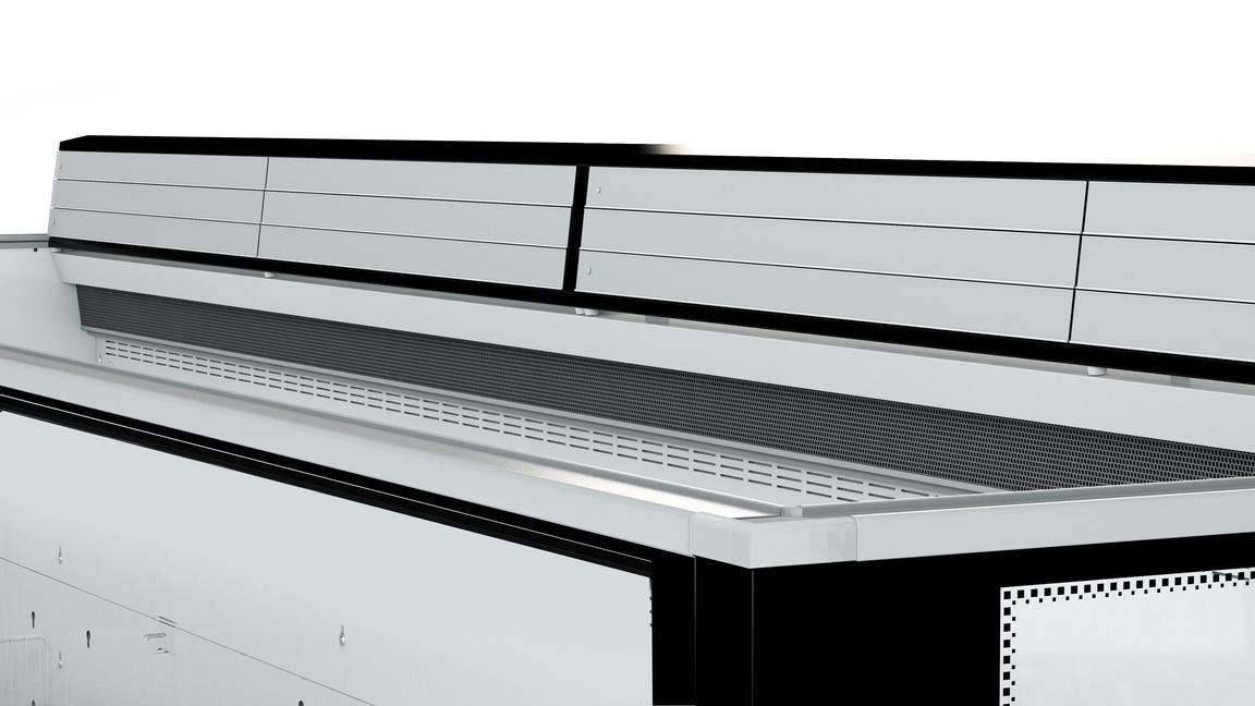 THE SL23 VERSION OF OUR TRADITIONAL REMOTE DOUBLE ISLAND IS PRESENTED IN EUROSHOP WITH CONDENSING UNIT IN THIS WAY WE OFFER THE FOOD DISTRIBUTION MARKET AN ISLAND MODEL WITH LARGE PANORAMIC CRYSTALS