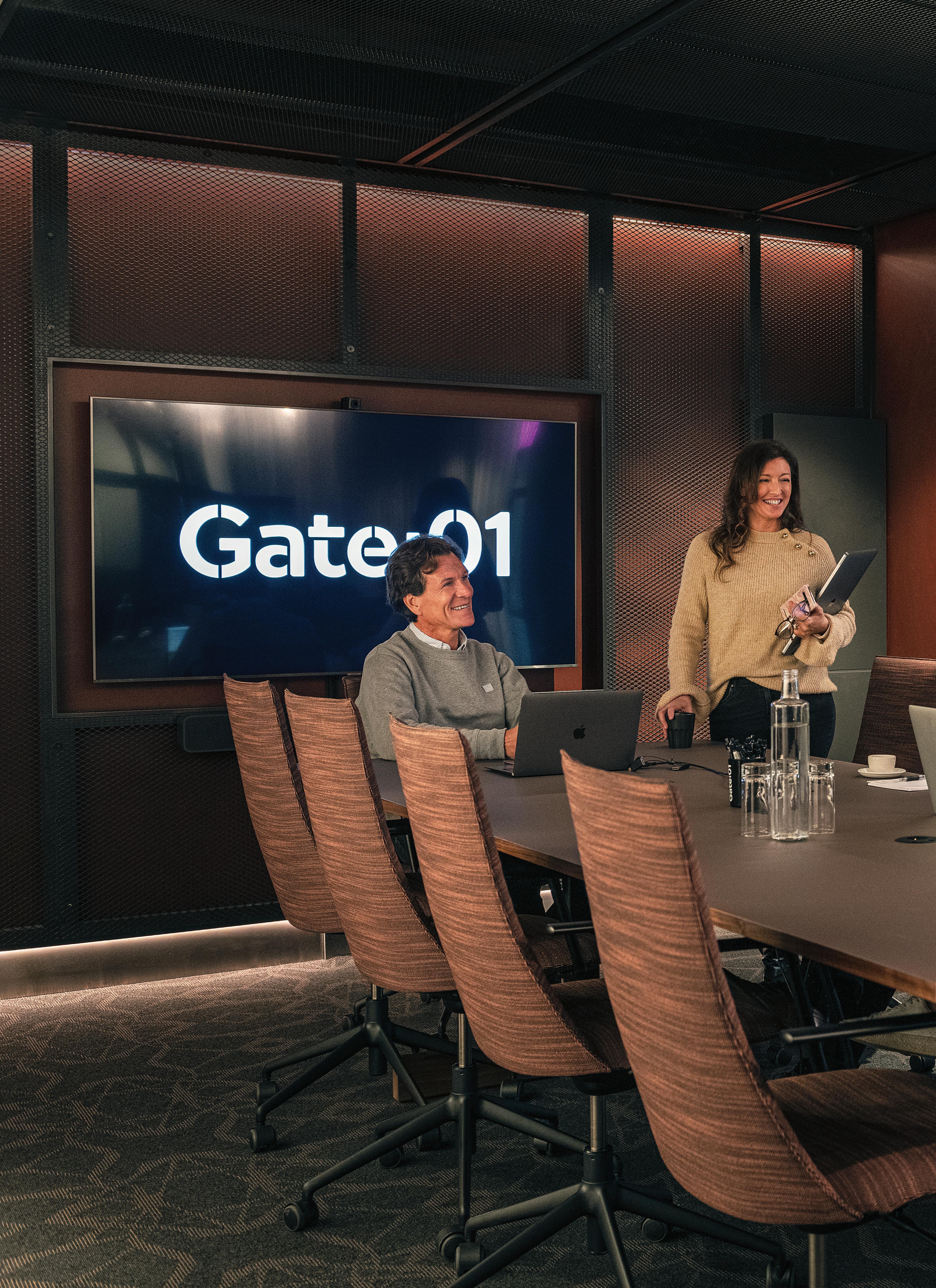 Kontoren på Gate:01 präglas av ljus, luft och närheten till naturen. Här ser man årstidernas växlingar direkt utanför fönstret. Och eftersom det finns så många ytor och funktioner inbyggda i fastigheten behöver man inte ha dem på sitt eget kontor. Här finns till exempel fräscha omklädningsrum med tvättmaskiner, ett toppmodernt gym och en stor konferensanläggning med hörsal. Dessutom finns det massor av loungeytor i den stora gröna ljusgården, vilket gör behovet av egna kvadratmeter ännu mindre. Smart och extremt kostnadsbesparande.