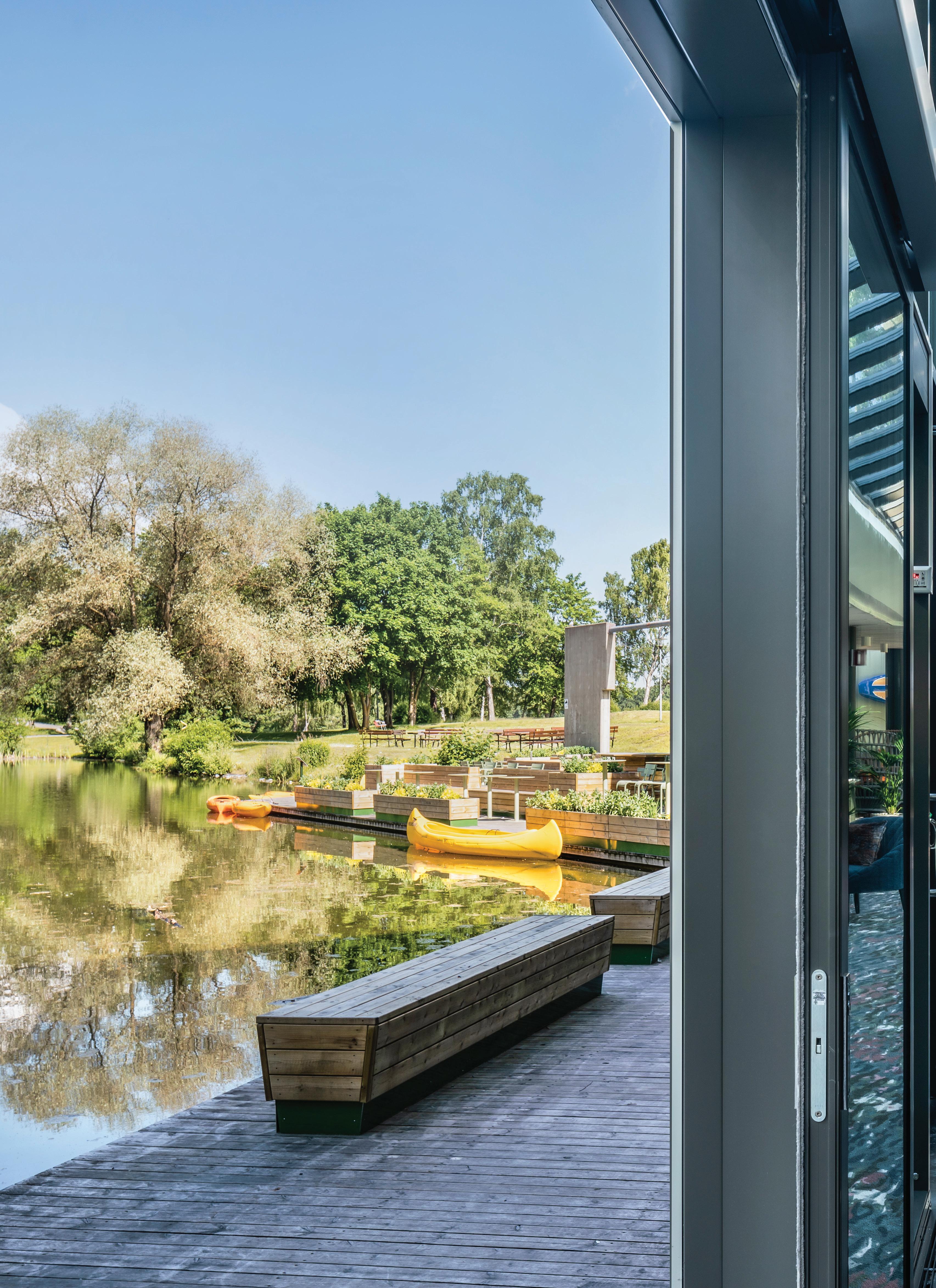 TRÄDÄCK MED STORA SITTYTOR INTILL DAMMEN