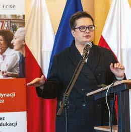– które mają zrewolucjonizować kształcenie kadr dla polskiego przemysłu. Pełnymi garściami korzystaliśmy też ze środków FERS: w lipcu przystąpiliśmy do realizacji projektu dotyczącego Indywidualnych Kont Rozwojowych Junior, dzięki któremu tysiące dzieci z rodzin o niskich dochodach uzyska dostęp do dodatkowych zajęć pozaszkolnych. Wartość tego przedsięwzięcia to 110 mln zł! Przeszło 40 mln zł przeznaczymy na projekt Peer Support, służący wypracowaniu metody wsparcia rówieśniczego uczniów i uczennic w kryzysach psychicznych. Olbrzymi potencjał tych inicjatyw – w połączeniu z sukcesem prowadzonej od lat działalności związanej z Erasmusem+ i EKS – sprawił, że mogliśmy ze spokojem przygotowywać się do Polskiej Prezydencji w Radzie UE w 2025 r. Mieliśmy pewność, że w obszarze edukacji nasz kraj – m.in. dzięki działalności FRSE – będzie dla innych cennym źródłem wiedzy i inspiracji.