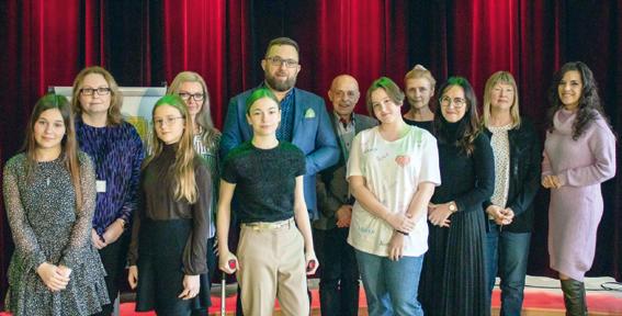 Fot. 1. Laureaci konkursu w kategorii szkoła podstawowa z organizatorami