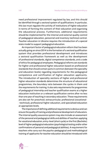 a highlighted relevance for post-pandemic societies, which can be seen in Wanda Dróżka’s chapter on teacher values and Anna Krzyżanowska’s on outdoor learning experiences. Some contributions highlight research findings that direct our attention to issues that will need to be reconsidered in the era of post-pandemic teacher education and societies, such as teacher wellbeing, gender and job satisfaction (Suzanne O’Keeffe), new kinds of physical spaces as learning environments (Louise Campbell), teacher candidates’ profiles and competences (Magdalena Jelonek, Barbara Worek and Marcin Kocór), teachers’ sense of readiness about research inquiry (Maria Antonietta Impedovo), teacher identity (Eugenia Tsiouplis and Dimitrios Stamovlasis), teaching quality assurance (Nataliya Avshenyuk and Nataliya Seminikhyna), and promoting quality through teaching and learning (Melanie Ellis, Martina Šipošová, Jenny Johana