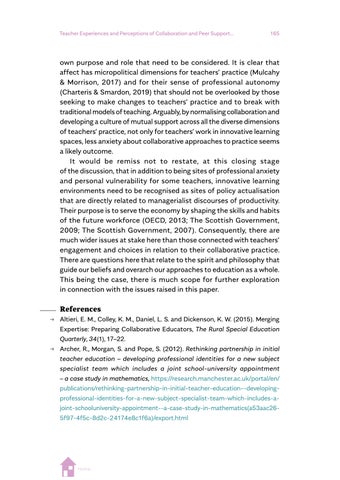 a highlighted relevance for post-pandemic societies, which can be seen in Wanda Dróżka’s chapter on teacher values and Anna Krzyżanowska’s on outdoor learning experiences. Some contributions highlight research findings that direct our attention to issues that will need to be reconsidered in the era of post-pandemic teacher education and societies, such as teacher wellbeing, gender and job satisfaction (Suzanne O’Keeffe), new kinds of physical spaces as learning environments (Louise Campbell), teacher candidates’ profiles and competences (Magdalena Jelonek, Barbara Worek and Marcin Kocór), teachers’ sense of readiness about research inquiry (Maria Antonietta Impedovo), teacher identity (Eugenia Tsiouplis and Dimitrios Stamovlasis), teaching quality assurance (Nataliya Avshenyuk and Nataliya Seminikhyna), and promoting quality through teaching and learning (Melanie Ellis, Martina Šipošová, Jenny Johana