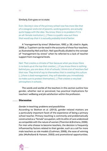 a highlighted relevance for post-pandemic societies, which can be seen in Wanda Dróżka’s chapter on teacher values and Anna Krzyżanowska’s on outdoor learning experiences. Some contributions highlight research findings that direct our attention to issues that will need to be reconsidered in the era of post-pandemic teacher education and societies, such as teacher wellbeing, gender and job satisfaction (Suzanne O’Keeffe), new kinds of physical spaces as learning environments (Louise Campbell), teacher candidates’ profiles and competences (Magdalena Jelonek, Barbara Worek and Marcin Kocór), teachers’ sense of readiness about research inquiry (Maria Antonietta Impedovo), teacher identity (Eugenia Tsiouplis and Dimitrios Stamovlasis), teaching quality assurance (Nataliya Avshenyuk and Nataliya Seminikhyna), and promoting quality through teaching and learning (Melanie Ellis, Martina Šipošová, Jenny Johana