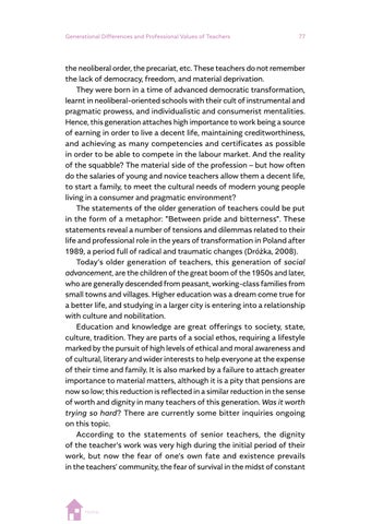 a highlighted relevance for post-pandemic societies, which can be seen in Wanda Dróżka’s chapter on teacher values and Anna Krzyżanowska’s on outdoor learning experiences. Some contributions highlight research findings that direct our attention to issues that will need to be reconsidered in the era of post-pandemic teacher education and societies, such as teacher wellbeing, gender and job satisfaction (Suzanne O’Keeffe), new kinds of physical spaces as learning environments (Louise Campbell), teacher candidates’ profiles and competences (Magdalena Jelonek, Barbara Worek and Marcin Kocór), teachers’ sense of readiness about research inquiry (Maria Antonietta Impedovo), teacher identity (Eugenia Tsiouplis and Dimitrios Stamovlasis), teaching quality assurance (Nataliya Avshenyuk and Nataliya Seminikhyna), and promoting quality through teaching and learning (Melanie Ellis, Martina Šipošová, Jenny Johana