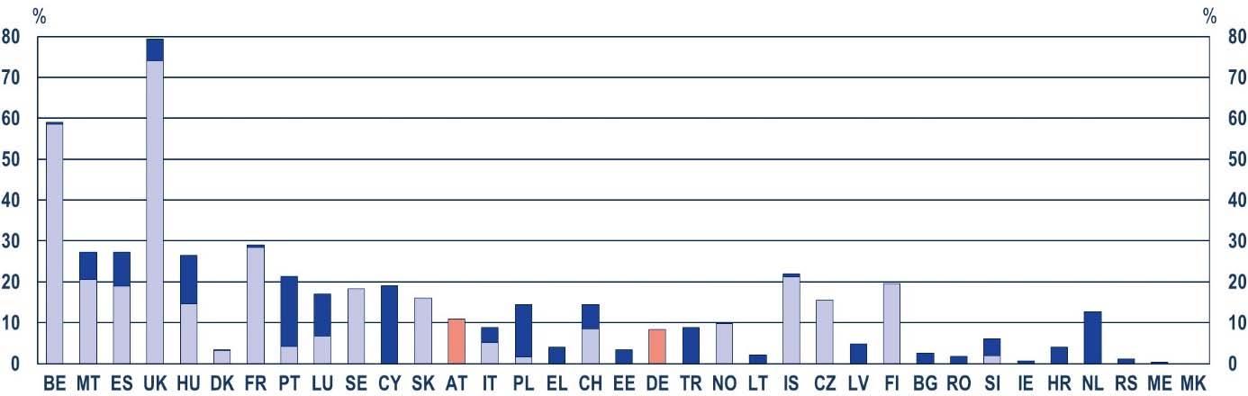Rysunek II.1.2: Wymóg dotyczący posiadania kwalifikacji na poziomie licencjatu (ISCED 6) lub wyższym w odniesieniu do przynajmniej jednego członka personelu w placówkach ECEC, 2019/20