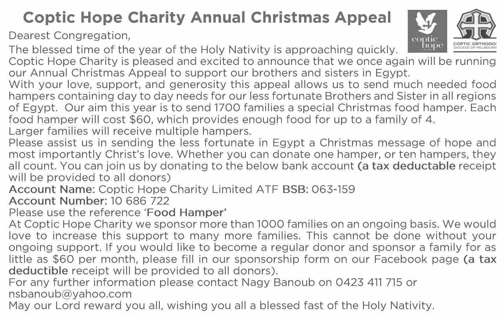 Friday 25th November the Advent Fasting started. It continues for 43 days and ends by the Feast of Holy Nativity at 7th January. It is allowed to eat fish during this fasting except on Wednesdays and Fridays and usually we abstain from food until 3pm. For those who got health reasons they can consult their father of confession. The Advent Fasting is a preparation for the Feast of Incarnation of our Lord. We fast 40 days taking an example of the Lord’s Fasting and from Moses Fasting for 40 days before receiving the Law and Commandments. We fast also extra three days in com memoration of the days fasted by people during the time of St Abraam the 62th Pope of Alexandria for the miracle of moving the mountain. The blessed month of Keiahk falls during the Advent days in which we sing and read all about the Incarnation of the Lord. Let us all pursue fasting in humility and repentance and offer our hearts to be holy sanctuary for our Lord the Child of the Manager the Incarnated Lord.