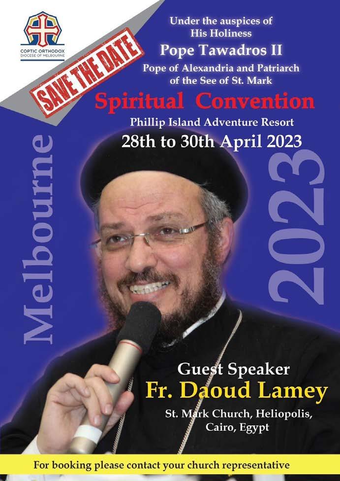 :ءارذعلا ةسينكب ةمدخلا ديعاوم :نينثلأا احابص ١١ - ٩ يهللإا سادقلا )يزيلجنا( احابص 7 - 5:30 :يهللإا سادقلا :ءاثلاثلا ىاو اذ - يزيلجنلإاب رابكلل عامتجأ ءاسم 7:30 احابص ١١ – ٩ ىهللأا سادقلا :ءاعبرلأا يبرع - رابكلل ةسمامشلا ةسردم ءاسم 8 - 6:30 يزيلجنا - ةسمامشلا ةسردم ءاسم 8:١5 - 7 يبرع - ناحلأ لوصف ءاسم٩ - 8 :سيمخلا يزيلجنا - احابص ١١ - ٩ يهللإا سادقلا ءاسم 7:30 يزيلجنا - ليللا فصن ةحبست ءاسم 7:30 يزيلجنا - سدقملا باتكلا سرد احابص ١١ – ٩ ىهللأا سادقلا :ةعمجلا رثكأف ةنس 25 بابشلا ءاسم ٩ – 7 )نيعوبسأ لك( ةرسلأا عامتجأ ءاسم٩-7 يزيلجنا - ةمدخلا دادعإ عامتجأ ءاسم 8:30 - 7 ١2 - ١0 تاونسل دحلأا سردم لصف ءاسم ٩ - 6 احابص ١١ – 8,30 يهللإا سادقلا:تبسلا ءاسم 3 - ١:30 ةفاشكلا عامتجا ءاسم 4 - 3 ةسمامشلا ةسردم 5,30 – 4 دحلأا سرادم يزيلجنا ءاسم 8:30 –7 بابشلا عامتجاو ةيشعلا ىبرع ءاسم 7 - 5:30 باتك سردو ةيشعلا :دحلأا يزيلجناو يبرع ص,7:45 – 6 لولأا سادقلا يزيلجنإ – ص ٩:30 – ,7:45 يناثلا سادقلا يبرع ص ١١:١5 – ٩:30 ثلاثلا سادقلا ءاسم ١2:30 - ١١:45 يزيلجنا - ناحلأ لصف :ةسينكلاب ةنهكلا ءابلأا ميبوراش سردات صمقلا بلأا 0414251251 Email: frtadros@me.com :نانوي سجرج بيبح سقلا بلأا 94498871Email: - 0401238177 habibgirgisyounan@hotmail.com 0422431821 :بيلص لكيام سقلا بلأا Email: frmichael@sac.edu.au Epsom Rd, 3031:ةسينكلا ناونع 93766651 :نوفيلت 5 Kensington Vic سورضوات سلريك سقلا بلأا 0411518399 يراكم نوج سقلا بلأا 0433445636 Liturgies during the Holy Lent 19th Feb - 7th April 2023 Additional Liturgies Tuesday & Thursday 5 - 7pm ريبكلا موصلا للاخ ةيفاضأ تاسادق 2023 ليربأ 7 - رياربف ١٩ سيمخلاو ءاثلاثلا ءاسم 75