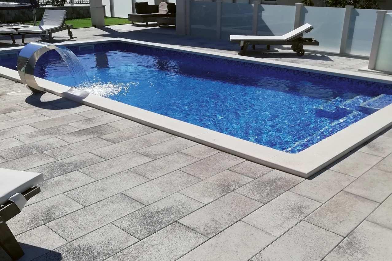Der mit Toscana-P astersteinen angelegte Garten lädt zum Entspannen mit mediterraner Romantik ein. Zeitlose Eleganz und mediterraner Charme werden durch charaktervolle Kombinationen und einzigartige Außendesigns ergänzt.
