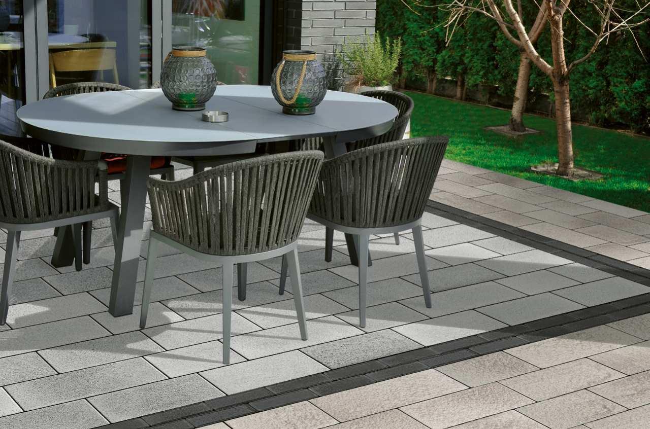 Die neue Ober äche der Produktlinie Eleganzza ist die perfekte Wahl für Ihre Terrasse. Die Ober äche besticht durch das feine Granulat im Vorsatz, welche die Platte optisch weich erscheinen lässt.