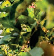 Cutworms can be a problem in Washington State, and while spraying can remove them, with sustainability in mind Kiona handles them a little di erently. They have established inter-row foliage of natural ora and spray an inert barrier product on the foliage of the grapes. This means the cutworms are still present and part of an active ecosystem, feeding on the inner row rather than the foliage of the grapes.