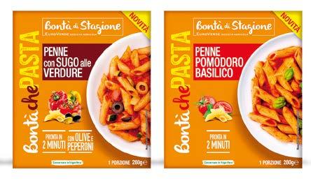 Bontà che Pasta di Euroverde nasce per rispondere a un’esigenza sempre più diffusa: portare in tavola piatti buoni, sani e pronti in poco tempo, senza rinunciare mai alla qualità. La nuova linea è disponibile a partire da metà aprile 2025 nei banchi frigo dei principali punti vendita della Gdo. La linea si compone di quattro referenze, tutte nel pratico formato monoporzione da 280 grammi, pronte in soli 2 minuti, in microonde o in pentola. Ogni piatto è pensato per offrire un’esperienza unica: un gusto profondo e un equilibrio di sapori che rende ogni ricetta adatta a una pausa pranzo veloce e appagante, o anche per una cena gustosa. Ci sono: i Rigatoni con sugo alla Trapanese, un piatto che si ispira alla ricetta siciliana, con un sugo a base di granella di mandorle e pomodori secchi; i Rigatoni al ragù vegetale, un classico rivisitato in chiave 100% vegetale, con proteine vegetali e verdure; le Penne con sugo alle verdure, un piatto vegetariano colorato e profumato, arricchito da peperoni gialli, rossi, olive verdi e nere; le Penne pomodoro basilico, un abbinamento intramontabile della cucina mediterranea.