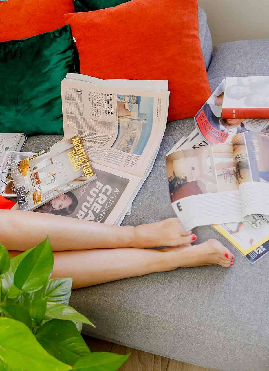 newspapers and interior decoration magazines, and I relax with them on the sofa at home.
