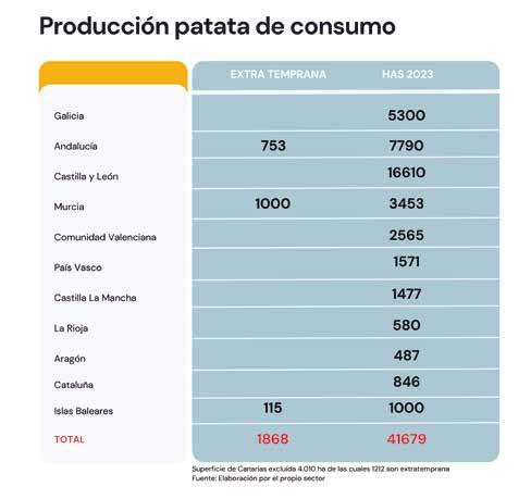 mayor desajuste se encuentra en Galicia, cuna de la patata, donde se estiman unas 17.000 hectáreas y donde otras fuentes solo hablan de 5.200 e incluso 3.500 hectáreas. Por otro lado, del monto total hay que excluir las 4.200 hectáreas de Canarias, lugar a donde no pueden llegar patatas de la península por ciertas plagas de cuarentena, pero que irrisoriamente, sí reciben patatas de Egipto, Inglaterra o Dinamarca. Todo un sinsentido y anacronismo que todavía persiste.