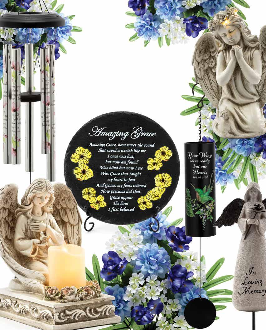 Sympathy 302 statuary 302-345 masculine 321-327 stepping stones/plaques 308-336 pets 336-338 easels 340-341 light up 302-304, 342-345 picks 346-347 wind chimes 348-357 memorial bushes 358-363