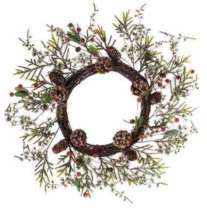 B 41151 Ice Berry Pine & Pine Cone Wreath Plastic 24”