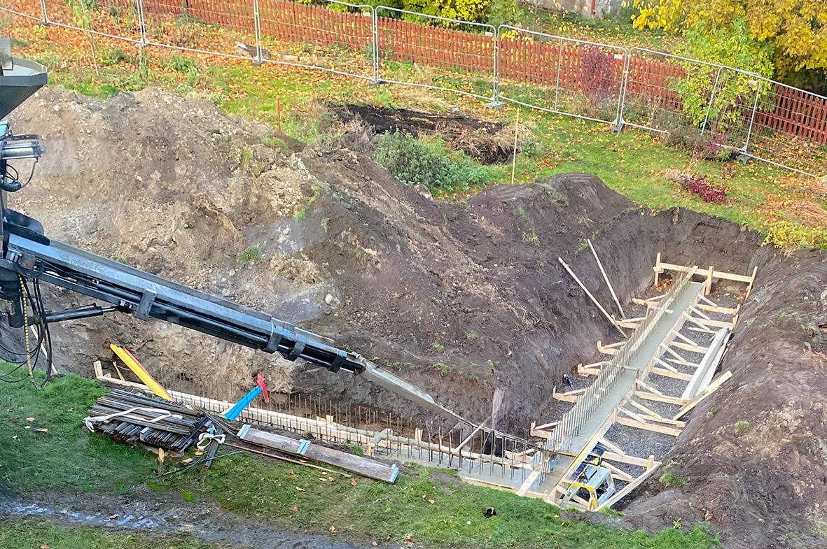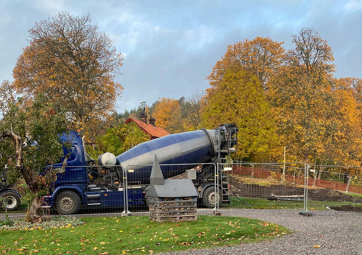 Den 8 oktober 2025 var det byggstart för Nya Sockenstugan och den 23 oktober kom den allra första betongbilen för gjutning av stödmuren.