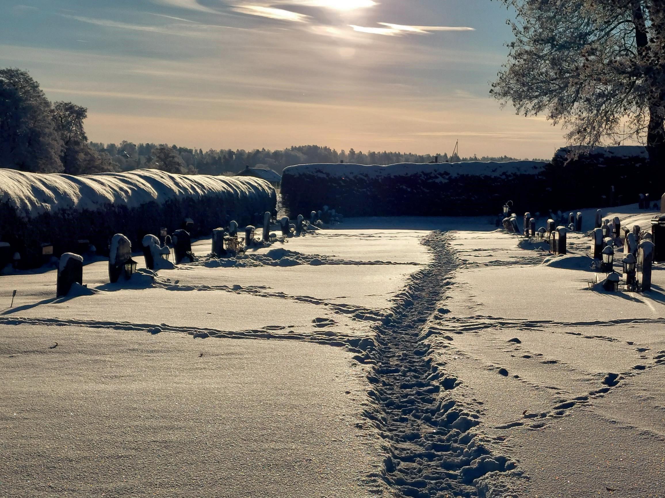 Kyrkogårdsförvaltningen ansvarar för att hålla kyrkogårdarnas huvudgångar framkomliga, och i möjligaste mån halkfria.