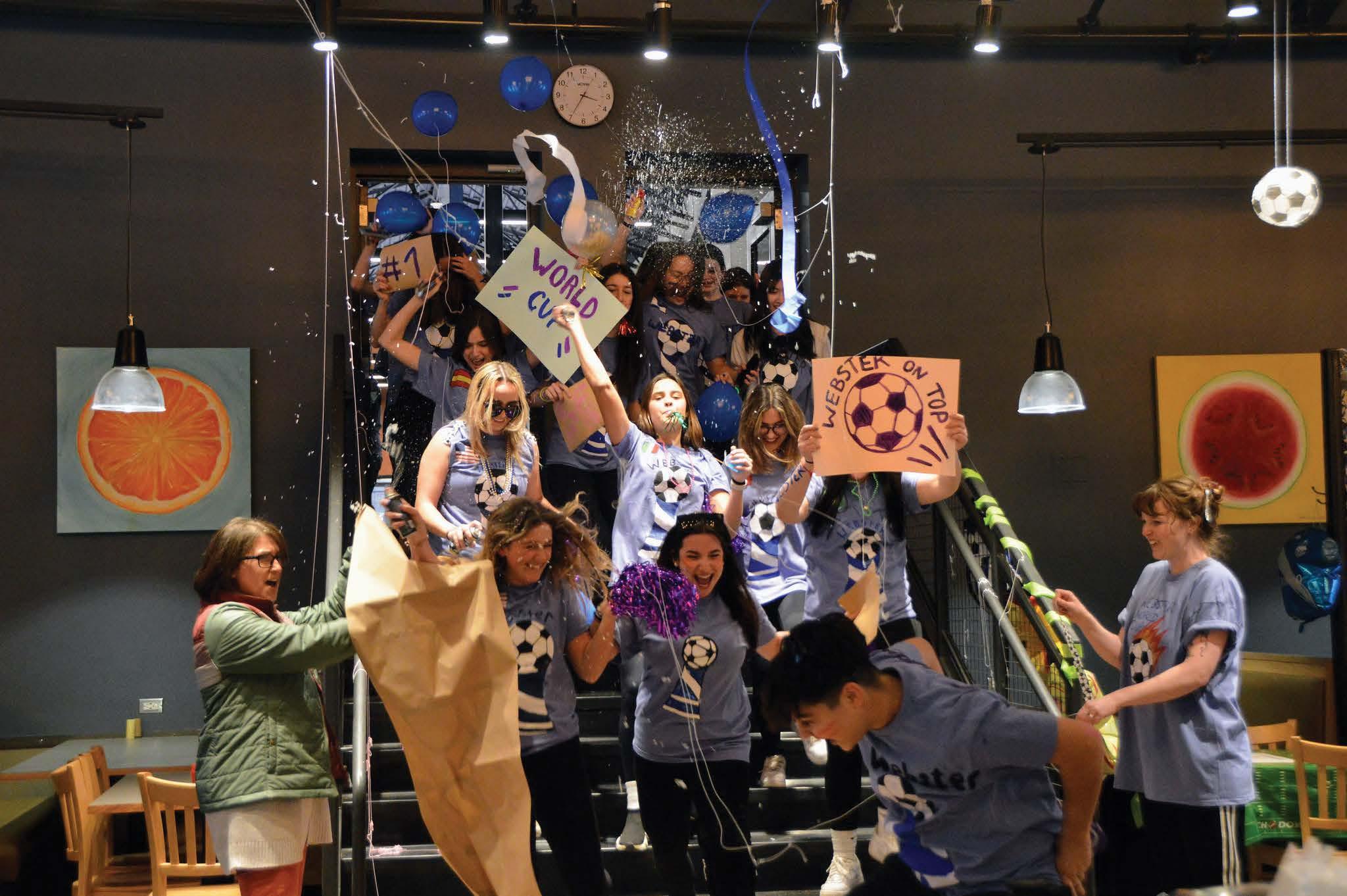 Dorm Olympics is a hallmark of the Fryeburg Academy experience. Boarding students compete in weeklong activities, ranging from relay races and the limbo to life-size Jenga and a pie-eating contest. The week ends in a choregraphed dance competition in the quest to earn the revered title of Dorm Olympic Champs!