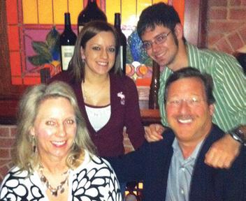 Michael Lord ’86 with his wife and children. Newly engaged Malissa O’Rourke Miot ’85 and Allen Ligon. 1985 classmates met up for dinner while Cooper Campbell Jackson was visiting from the West coast. (l to r) Steve Cote, Laura Cummings, Jim Osgood, and Cooper.
