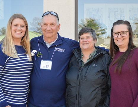 Isaac (Paul) Wagner ’91, daughter Hazel Wagner, and Suzanne Martin Wagner ’91 at the Loop the Lake half marathon. Their daughter Hazel ran the full marathon. Field Hockey alums Hillary Stacy Allocco ’99, Angela Stacy Nelson ’99, and Jennifer Stacy Bartlett ’93, with senior field hockey player Alegra Bartlett ’23.