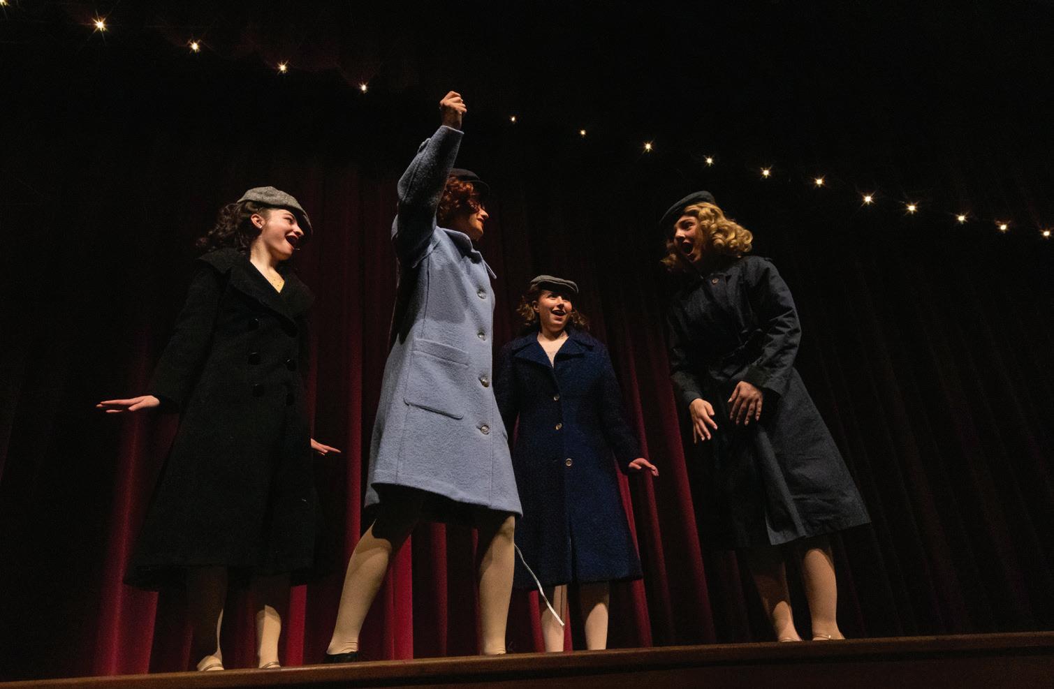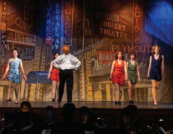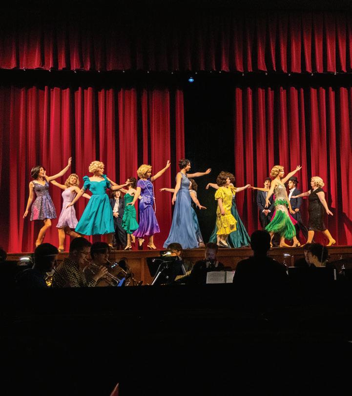 of second semester in the context of jazz combos and big band, so many of the music program veterans were well equipped to tackle the challenging and vibrant score of 42nd Street. The musicians and company were also challenged by the incorporation of several rhythmically complex tap numbers throughout the show. Even beyond the skill and practice required of the dancers to master their routines, the dancers and pit were tasked with synching up rhythmically to produce a smooth and unified sound, while also following the vocals. 42nd Street was a feat of collaboration and artistic labor that will be remembered fondly by all involved, and hopefully, all who saw.