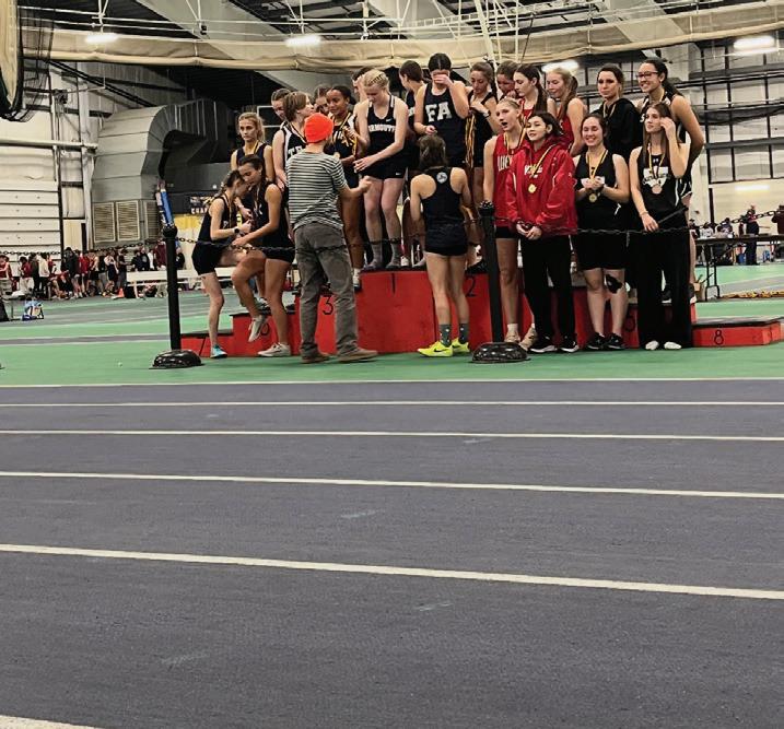 Last year's Indoor Track and Field team had an outstanding season both individually and across the team. Exemplifying individual success, Ty Boone and Avery Bariteau competed in Massachusetts for the New England Indoor Track and Field Championships. In the regular season, Avery Bariteau finished 1st place in the 200m (26.10) and 3nd in the 55m in States (7.47). Ty Boone won 1st in States for the High Jump with 6 '2'’, qualifying both for the Championships. Bariteau, qualifying for both the 55 meter dash and the 200 meter dash, finished the Championships with 19th in the 55m, and 10th in the 300m. Boone, qualifying for the High Jump, finished 15th overall. Haruki Takagi finished 3rd place in the 55m at States overall with a time of 6.74, and won 2nd place in the 200m with a time of 23.71. The boys relay team finished 2nd in States, with a time of 1:36.24. For the team as a whole, it was the first time in Fryeburg Academy history that the boys’ team finished 2nd overall, which is a great improvement and accomplishment for FAIT.