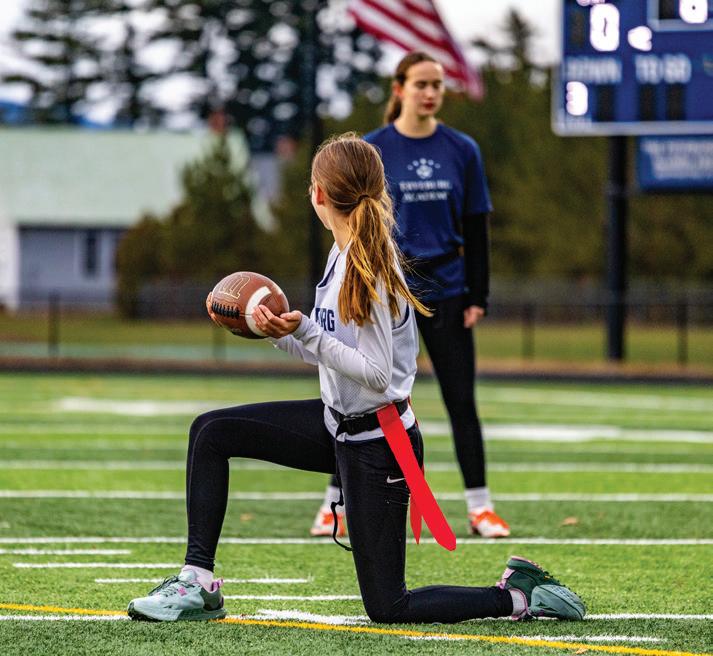 In early November, the girls’ soccer team and girls’ field hockey team participated in the Turkey Bowl. In this event they faced each other in a high energy flag football match. Girls’ soccer ended up winning the match with a score of 0-22. Touchdowns were made by Mathilde Buschholz ‘27, Bryielgh Gerry ‘28, and Eden True ‘26. Bryielgh had almost made another touchdown for her team however, the touchdown had not counted as she forgot to put on her flags. The field hockey girls were aggressive throughout and gave it their all, never giving up. One star player that stood out during the match for the field hockey girls was Addison Valente ‘28. Addison ran many yards keeping the energy for the field hockey girls high. The highlight of this event, however, was the fundraising. Mrs. Murphy and Mrs. Meier worked together to figure out what food our community needed during Thanksgiving time. Mrs. Murphy