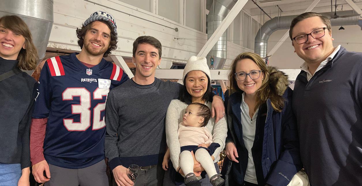 Hannah Sawyer ’08, Terry Classen ’08, Dan Broyer ’09, Dan’s wife Vivian and daughter Alina, Dylan Anderson’s wife Nolan, and Dylan Anderson ’09