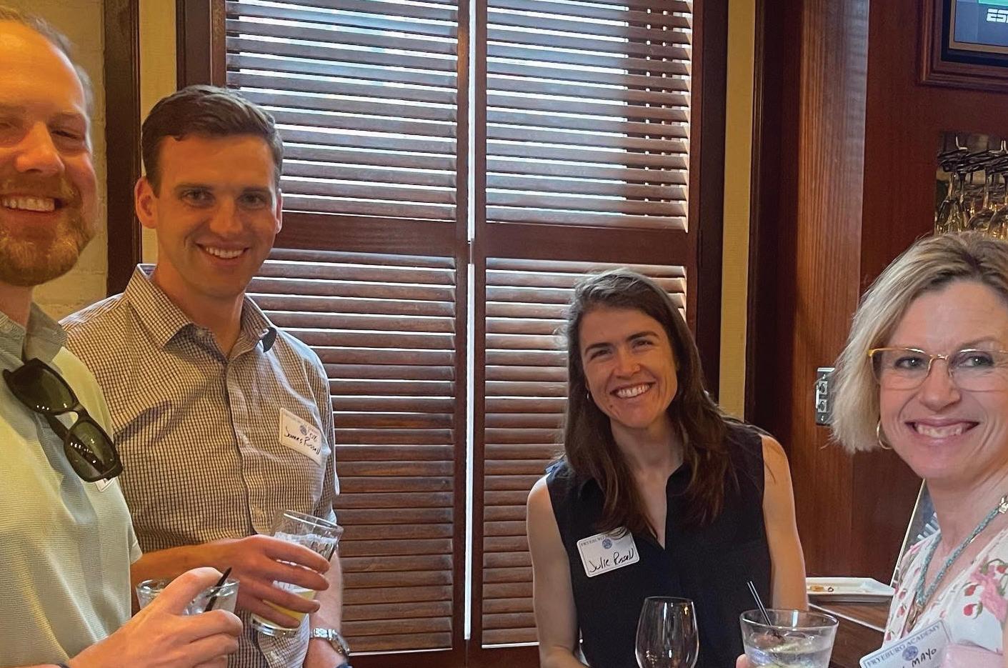 Rob Waters ’08, Jimmy Russell ’08, his wife Julie, and Head of School, Erin Mayo.