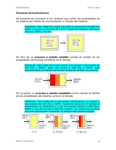 Por su parte, un proceso a estado inestable ocurre cuando el cambio de las propiedades del sistema varía en el tiempo. Ilustración. Cien moles de un gas entran inicialmente a un equipo a una presión de 200 kPa y 300°C. Conforme transcurre el tiempo la alimentación va cambiando y a los 30 minutos ingresa a 290 kPa y 450ºC y a los 60 minutos a 380 kPa y 600ºC. Las condiciones del flujo de salida permanecen constantes. El sistema está ganado energía.