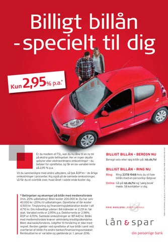 BILLIGT BILLÅN – BEREGN NU Beregn selv eller søg billån på: lsb.dk/fsl
