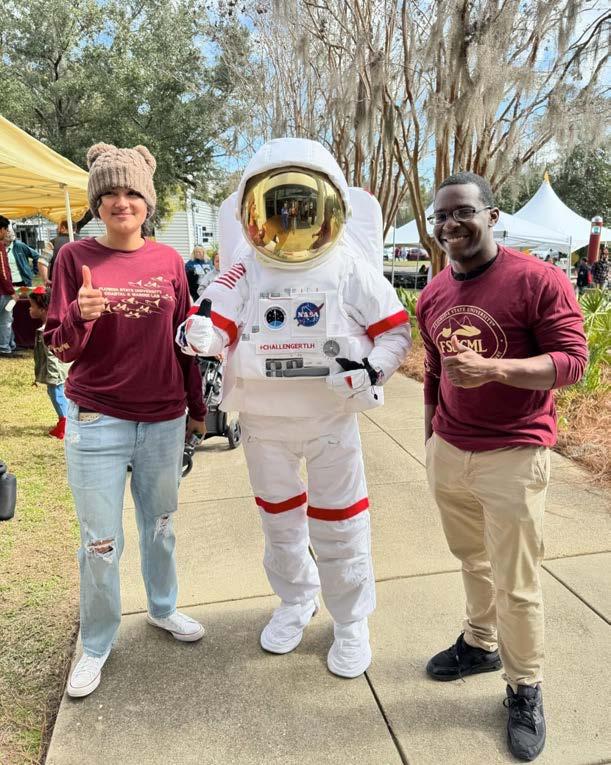 This spring semester, students in Dr. Andy Opel’s ImmersiveMediaProductionclasssteppedintoanew world in the FSU Immersive Media Dome. Acquired through an interdisciplinary Equipment & Infrastructure Enhancement Grant (EIEG), the FSU ImmersiveMediaDomeisa360°screeningspacethat allows groups of up to twenty people to experience immersive video together without the need for a VR headset. Students took full advantage of the experience, crafting video projects catered to the technology using two 360° cameras, the GoPro Max and the Insta360 RS One. Students in the Immersive Media Production class spent the second half of the semester at the Challenger Learning Center Planetarium, where they viewed their work in a theatersettingwithaprofessionalprojectionist.
