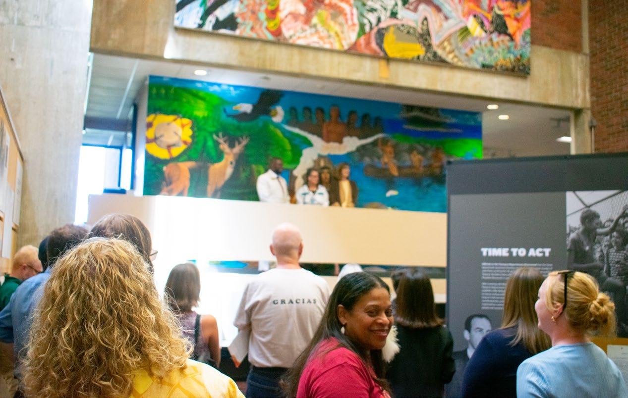 The mural was created with the goal of recognizing the Indigenous Nipmuc people as the original inhabitants of the land that is now Framingham State University and building bridges with the Nipmuc community.