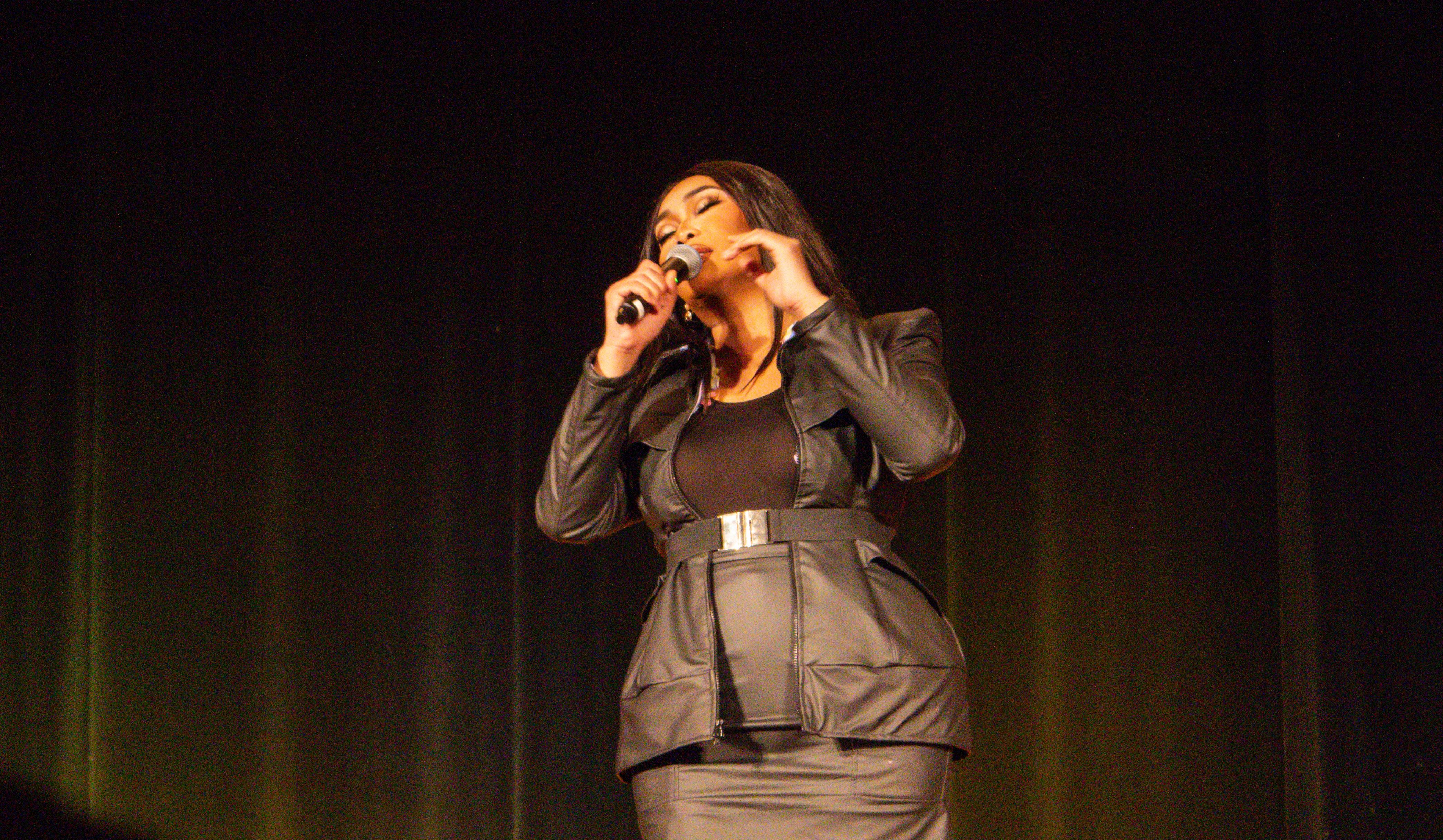 Former RuPaul’s Drag Race finalist Jujubee performing at FSAB’s Drag Bingo event in Dwight Hall March 30.