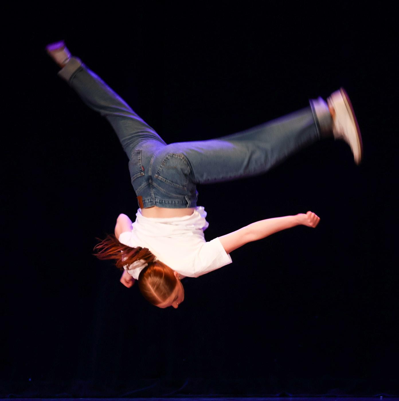 Zophie Greenwald doing a flip during “Off the Wall” at the dance team’s “Battle of the Genres” showcase on Dec. 5.