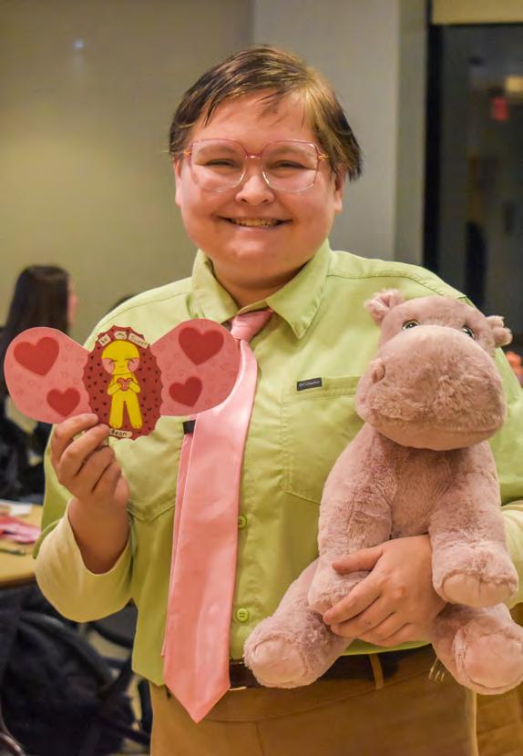 Jayjay Johnson with a stuffed animal and card at Art Club’s Card Making event Feb. 12.