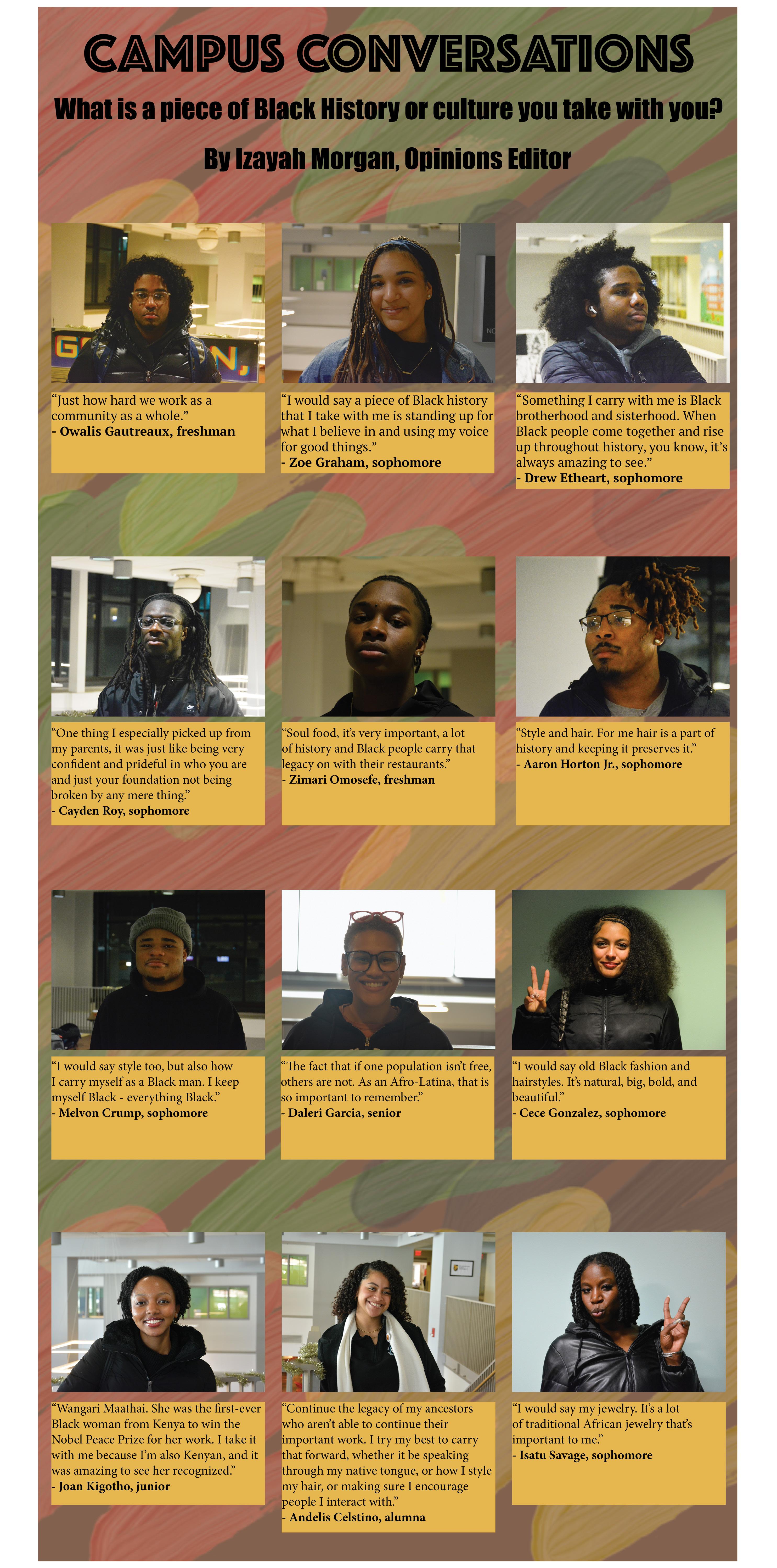 Struggle, but not in the way we think. Like, we fought through so much adversities just to get where we’re at right now. We’re still trying to propel ourselves ... and put ourselves in better positions, even though we’re in a system that’s made to keep us down. I feel like when it comes to Black history, people mainly focus on the negatives, which we can’t ignore. It’s a part of our blood. But Black history is not only that. Black history is beautiful. It’s the community we build. It’s the challenges we face together, and it also shows us how, no matter what, if we just come out together as a community, we can do anything. And finally, we have to come to the realization that we’re just as capable as our white counterparts.
