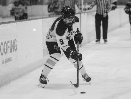 first puck drop. Sophomore Petra Cernicek took the first shot on goal, which was saved by Anna Maria’s goaltender, Emma Brewer, followed by a wide shot by sophomore Alyssa Tansek.