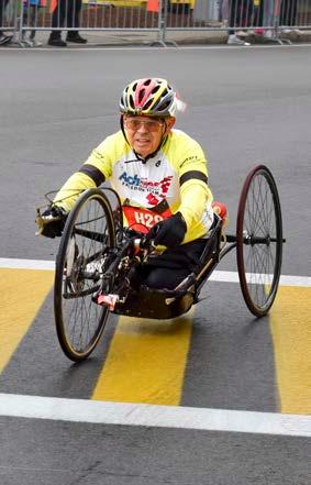 Leighah Beausoleil / THE GATEPOST (Center) Antonangelo Bragalini, a 62 year old from Trento, Italy, with other fourth-wave runners in Framingham during the 127th Boston Marathon held Patriots’ Day, April 17.