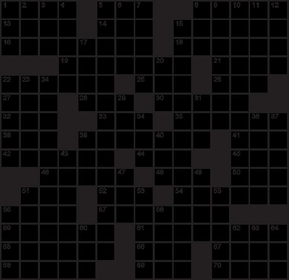 17. Factor in Hindu reincarnation 18. Farmland unit 19. Seek out crawdads, say 20. Workplace mismatch 21. Ocean predator 23. Inventor Whitney 25. Strain, as our 26. Didn’t go bad 29. Ga. airport 31. Commit perjury 32. “Sleep well last night?” 35. Ampli ed by retweeting, perhaps 36. Notable item of neckwear worn