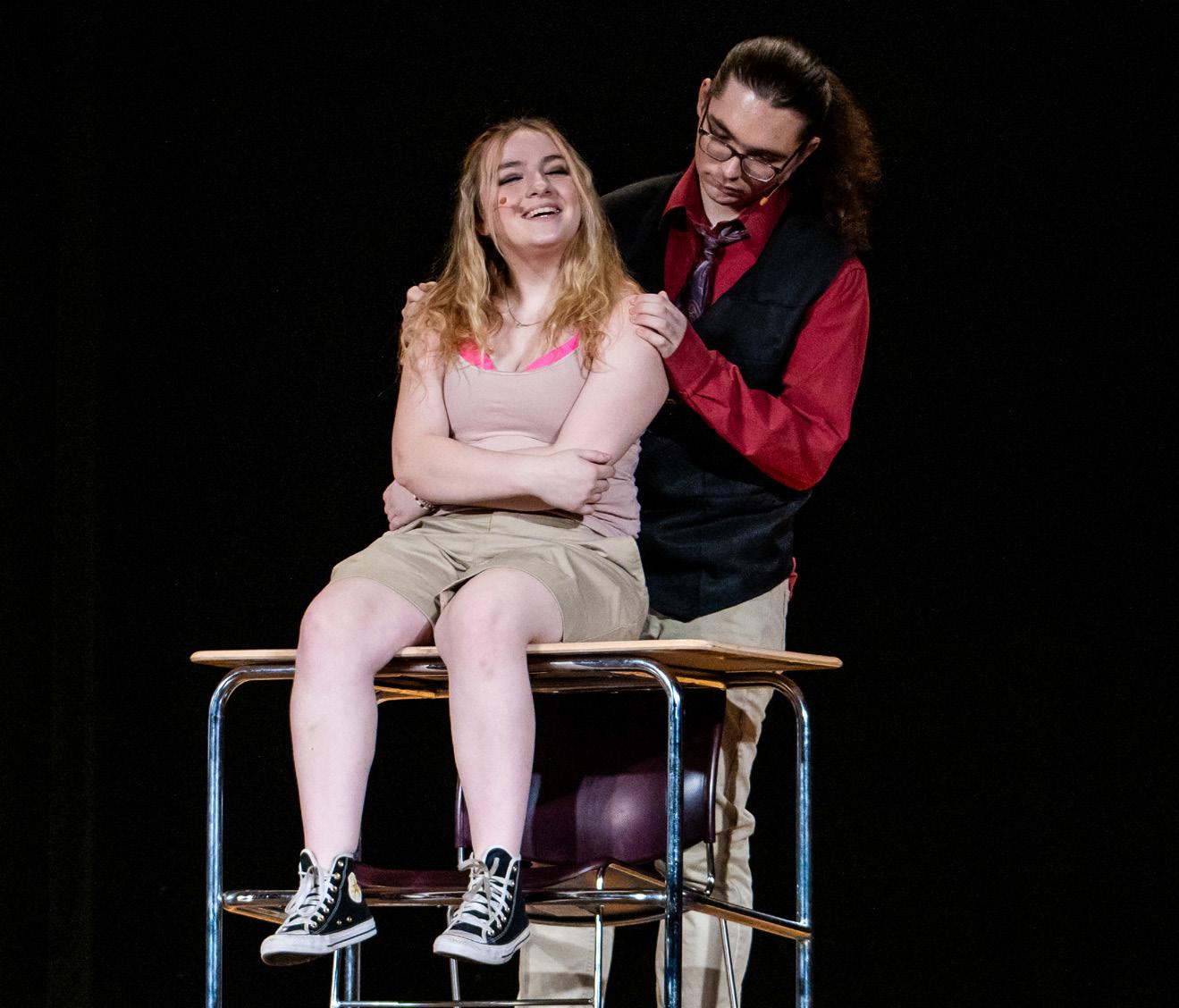 [Left] Maddy Verdoia and Ark Mitchell as “Carmie” and “Tim” during a tech week rehearsal on Nov. 11. Alexis Schlesinger / The Gatepost