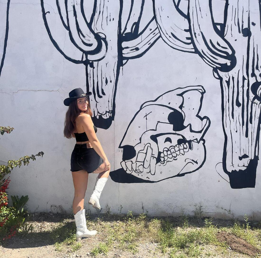 For my first look I took the pictures in front of a Mural that is inspired by my original mural.I liked the way the cactus and skull looked with her outfit and tied the look in together.I also made sure to focus on her turquoise jewlery.