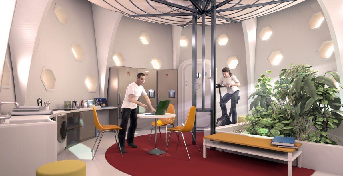 All the rooms/interior spaces of Martian habitat need to be arranged in the best possible way to get mutual benefits from each other and minimize the circulation areas as much as possible. For example, instead of designing a separate greenhouse for less sensitive plant, the plants can be grown in the common areas, or even inside the living quarters of the crews. It will create a lively interior environment with visual comfort for the crews in a red planet. Another important consideration for this internal arrangement will be to ensure clear distinction between public and private spaces or at least a visual illusion of it so that the crews can get enough privacy for their psychological wellbeing.