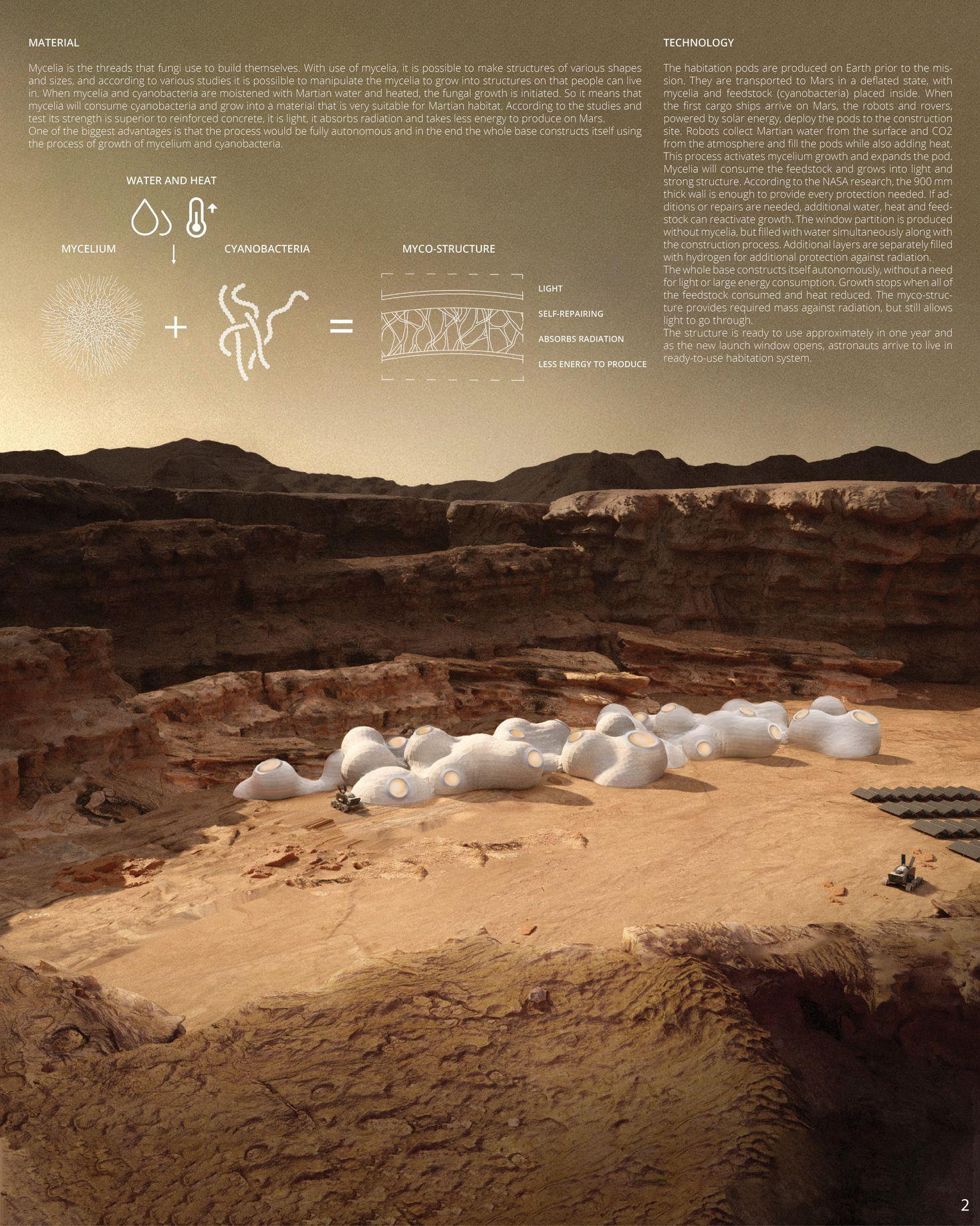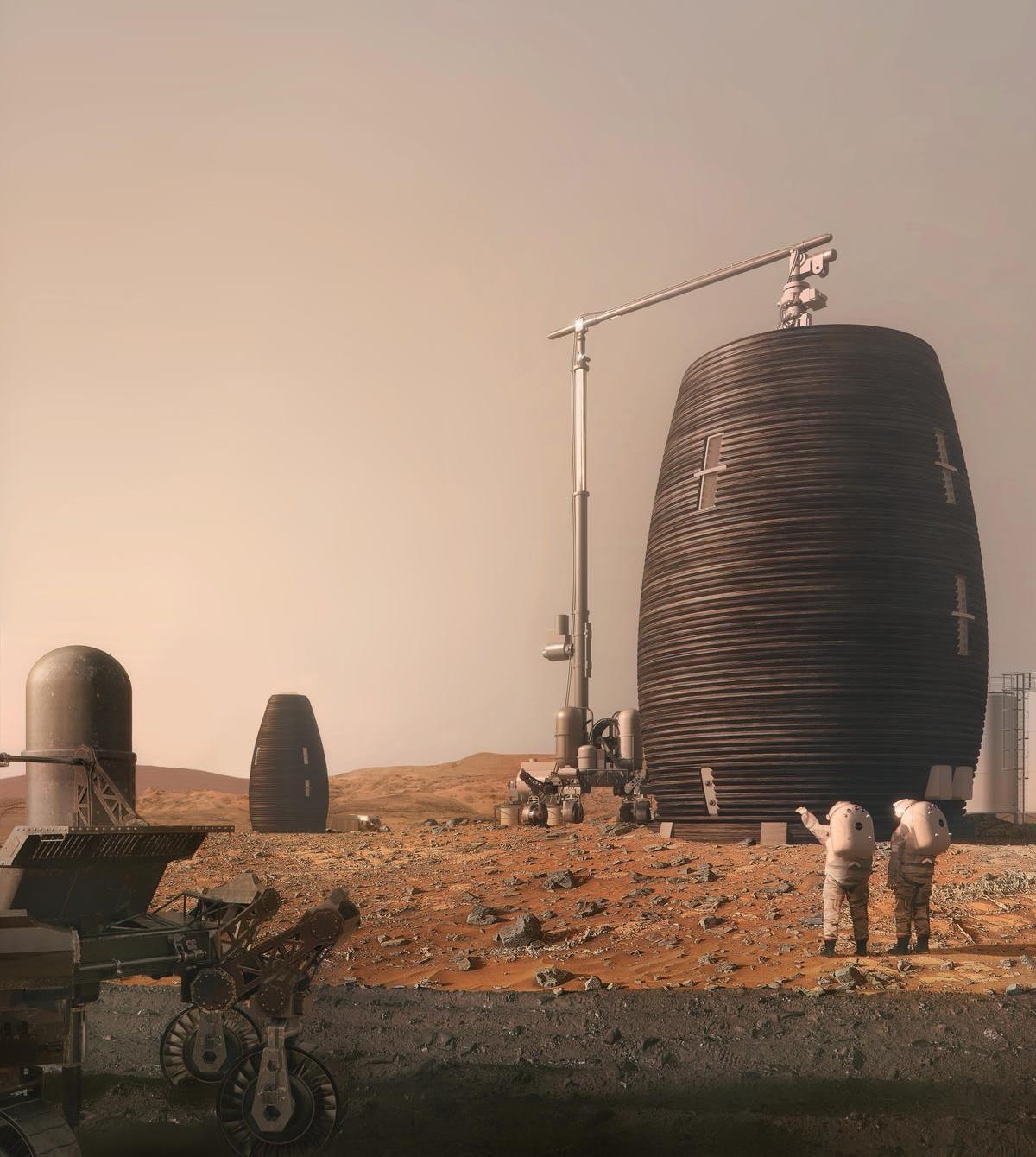 employ a unique dual-shell scheme to isolate the habitable spaces from the structural stresses brought on by Mars’s extreme temperature swings. This separation makes the interior environment unbeholden to the conservativism required of the outer shell, which retains its simple and effective form.
