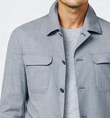 Our suiting highlights showcase Italian excellence – Summertime Move and Jersely fabrics, linen blends, and pure silk – while seasonal jackets introduce herringbone from Ferla and Softime fabrics made in Italy by Loro Piana for added depth and distinction. Shirts (p. 93) evolve to meet the moment with Yoga natural-stretch cottons by Albini, cotton-linen chambray, seersucker, and washed denim.