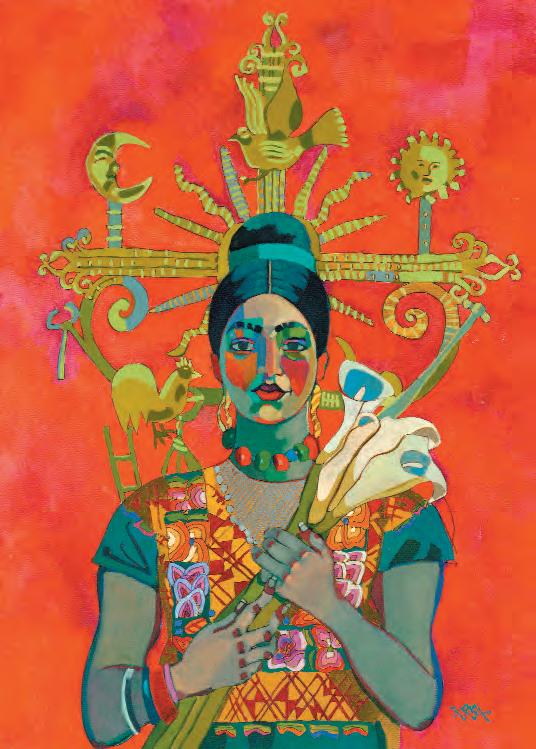 weaving in the 1960s. Her mixed media works incorporate weavings, paintings, and found objects to create pieces rich with colors and textures.