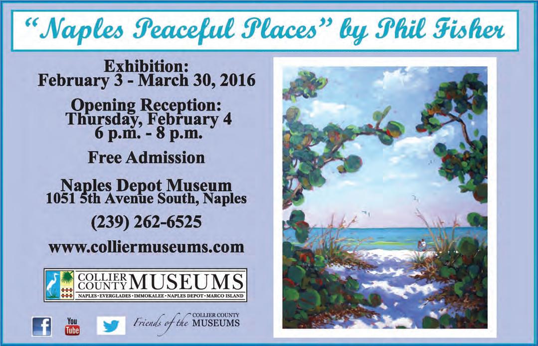 The Naples Depot Museum presents ‘Naples’ Peaceful Places,’ an exhibition of paintings by Phil Fisher, February 3-March 30. For information, call 262-6525.