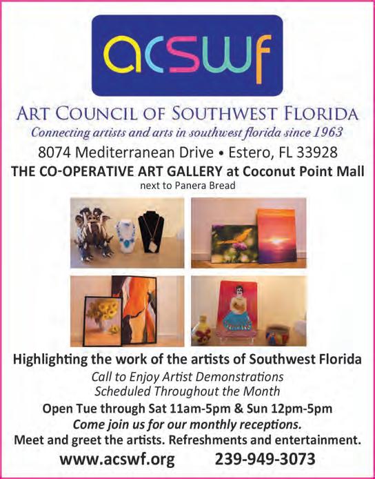 •Shangri-La Springs: 27750 Old 41 Rd, Bonita Springs. 2nd Wed: Free Art & Nature Community Night 6-9p. 949-0749.