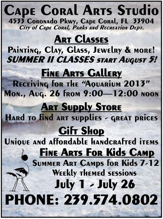 JULY–AUGUST 2013 www.ftmyersmagazine.com or 239-433-3884 or ftmyers@optonline.net smagazine.com September-October 2013 G UIDEto Southwest Florida ATTRACTIONS Online All Year A DVERTISING D E ADLINE : AUGUST 12 January-February 2014 G UIDEto Southwest Florida ARTGALLERIES Online All Year A DVERTISING D E ADLINE : D ECEMBER 13